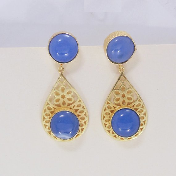Designer Handmade Blue Chalcedony Gemstone Dangle Earrings