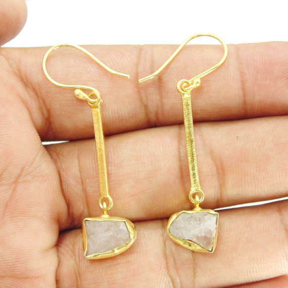 Natural Rose Quartz Gold Plated Dainty Hook Dangle Earrings