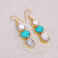Let the pretty tones of this white pearl, opalite and turquoise triple gemstone earrings leave a mark of extreme royalty on its wearer making this a beautiful gift for wife. This unique handcrafted dangle earrings made of nickel free brass metal with special 18k yellow gold plating.