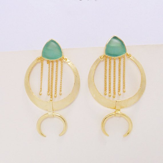 Designer Indian Artisan Aqua Chalcedony Gemstone Earrings