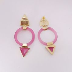 Pink Stone Earrings - Gold Plated Earrings - Brass Earrings - Fashion Earrings - Post Dangle Earrings - Bridal Earrings - Gift For Women