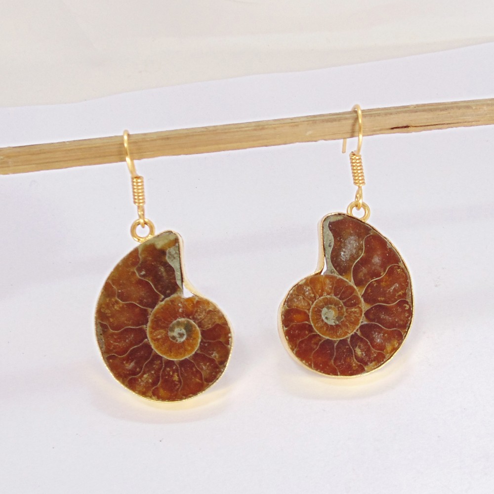 Designer Ammonite Fossil Gold Vermeil Earrings