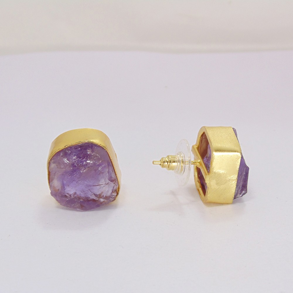 Designer Raw Amethyst Gemstone Post stud Earrings