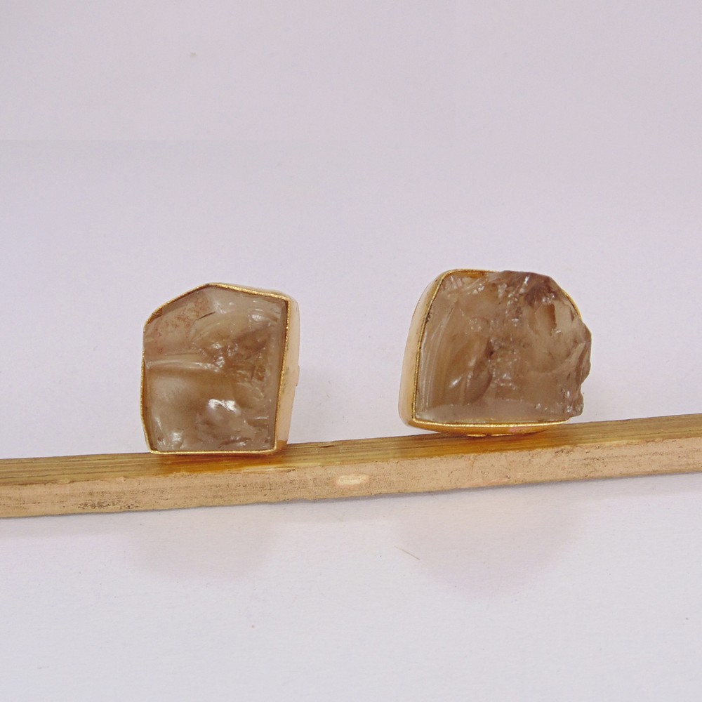 Designer Raw Smoky Quartz Gemstone Studs Earring