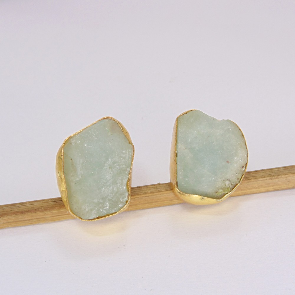 Designer Aquamarine Gemstone 18k Gold Plated Studs Earrings