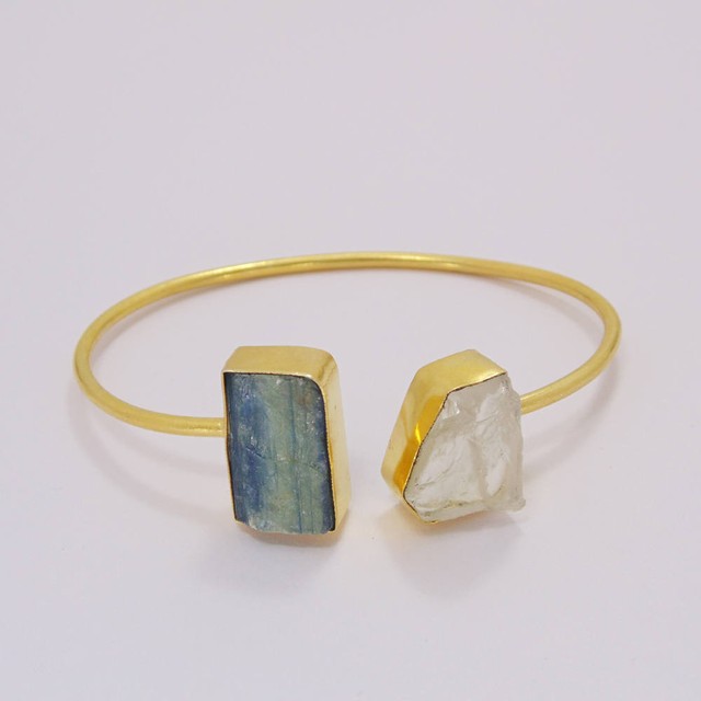 Crystal Quartz Bangle - High Fashion Bangle - Kyanite Bangle - Healing Stone Bangle - Natural Stone Bangle - Metal Bangle - Gift For Her