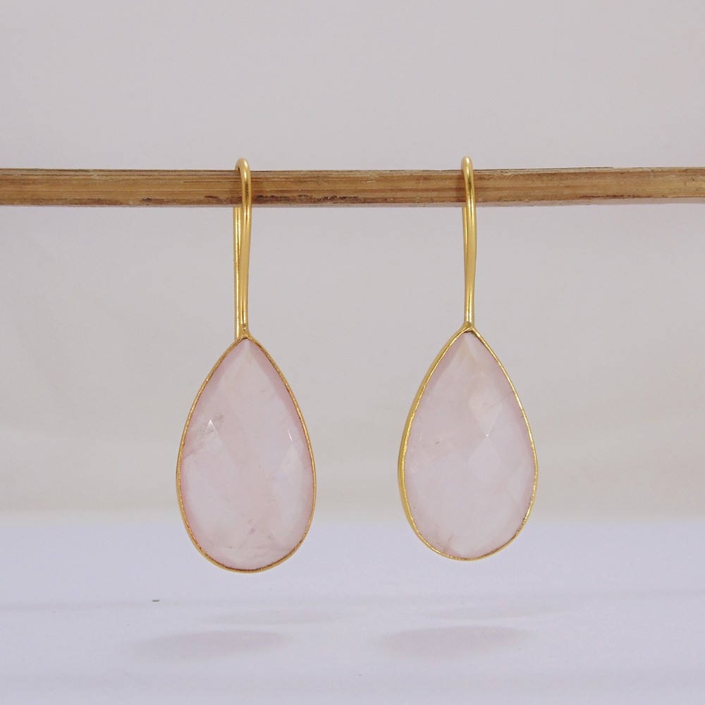 Designer Rose Quartz Gemstone 18k Gold Vermeil Earrings