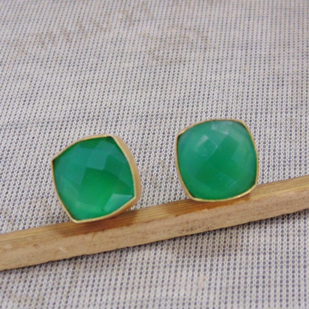 Natural Green Onyx Gemstone Studs - Cushion Stud Earrings - Women Post Studs Earrings - Gemstone Studs - Stone Studs Earrings - Women Birthday Gift - Gift For Her