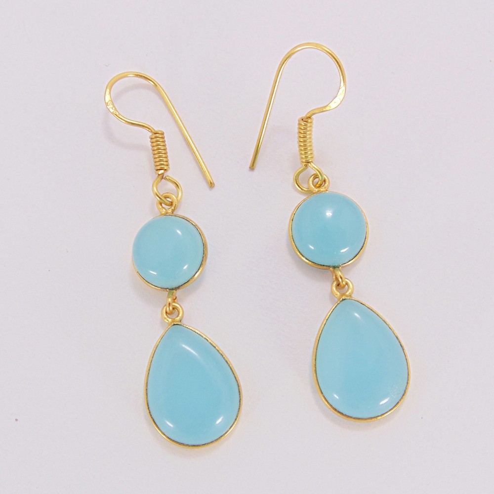 Designer Blue Chalcedony Gemstone Drop Dangle Earrings