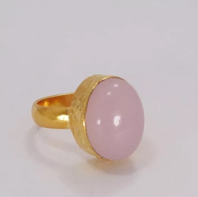 Handmade Rose Quartz Oval Shape Adjustable Ring For Her