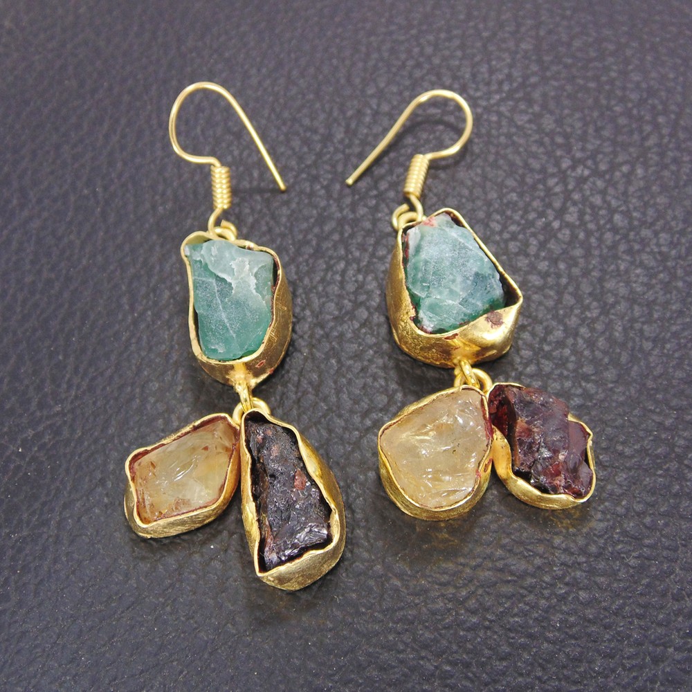 Fluorite Earrings, Raw Citrine Earrings, 18K Gold Plated Earrings, Garnet Earrings, Raw Stone Earrings, Fashion Earrings, Dangle Earrings