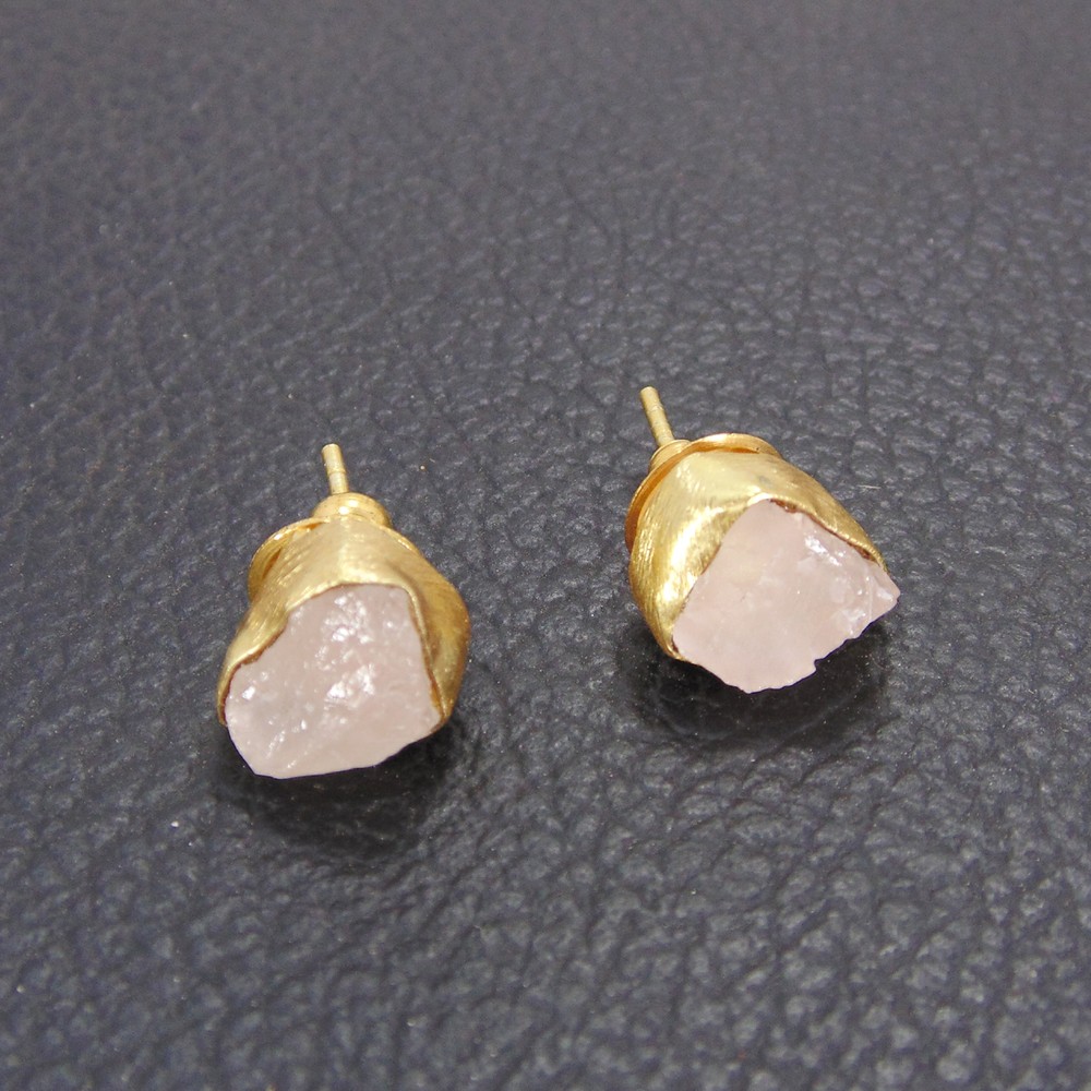 Natural Rose Quartz Studs - Fashion Studs Earrings - Rough Stone Studs - Womens Stud Earrings - Post Studs Earrings - Gift Ideas For Her