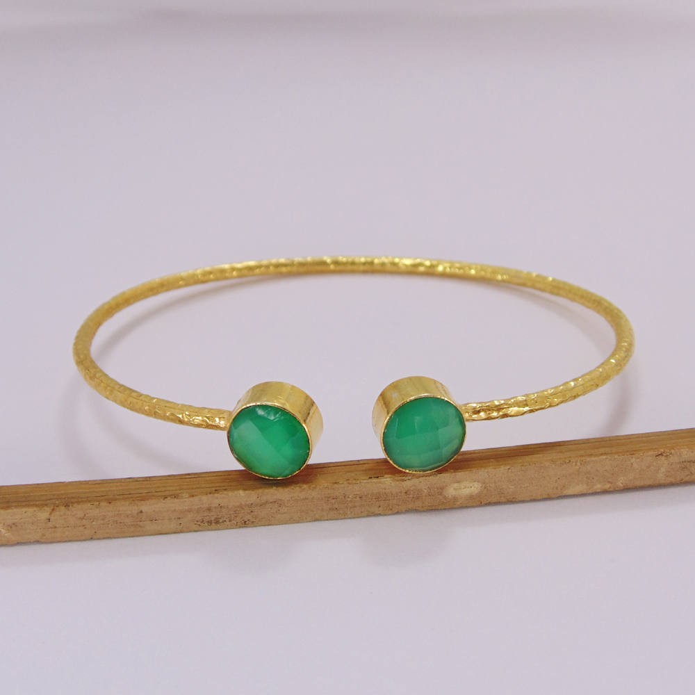 Natural Unique Green Onyx Mattle Gold Delicate Round Bangle