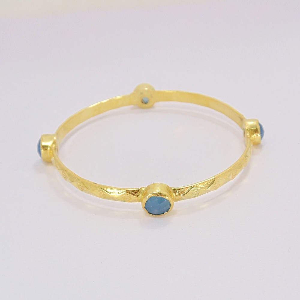 Handmade Blue Chalcedony Gold Plated Aqua Gemstone Bangle