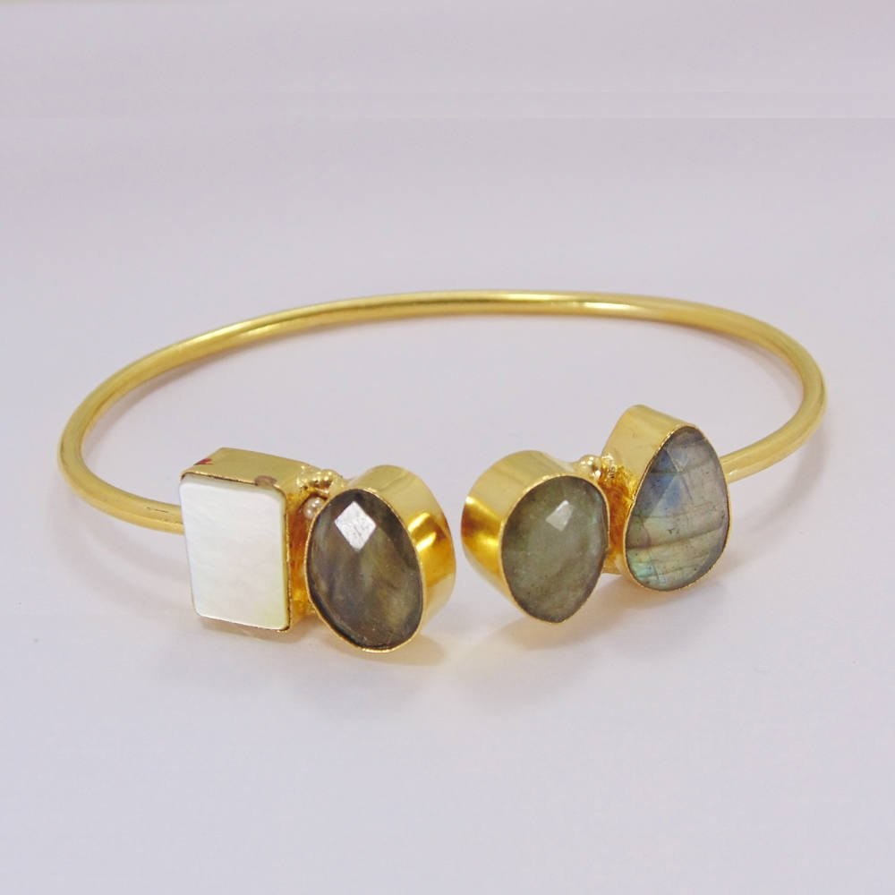 Gold Plated Labradorite Pearl Designer Adjustable Bangle Gift for Her