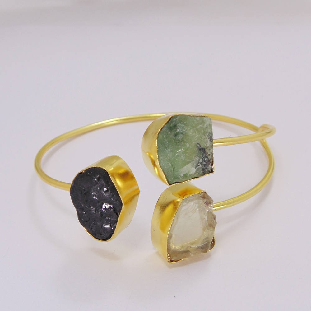 Natural Unique Tourmaline Three Stone Adjustable Gemstone Bangle