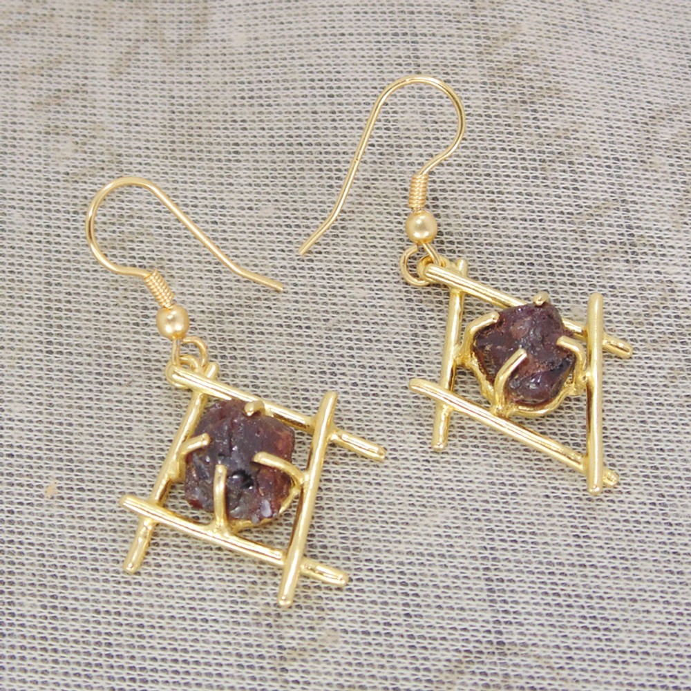 Designer Handmade Garnet Gemstone Prong Set Cross Earrings