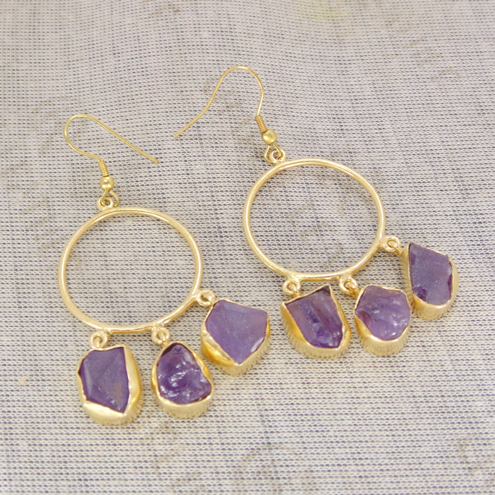 Designer Natural Amethyst and Chandelier February Birthstone Dangle Earrings