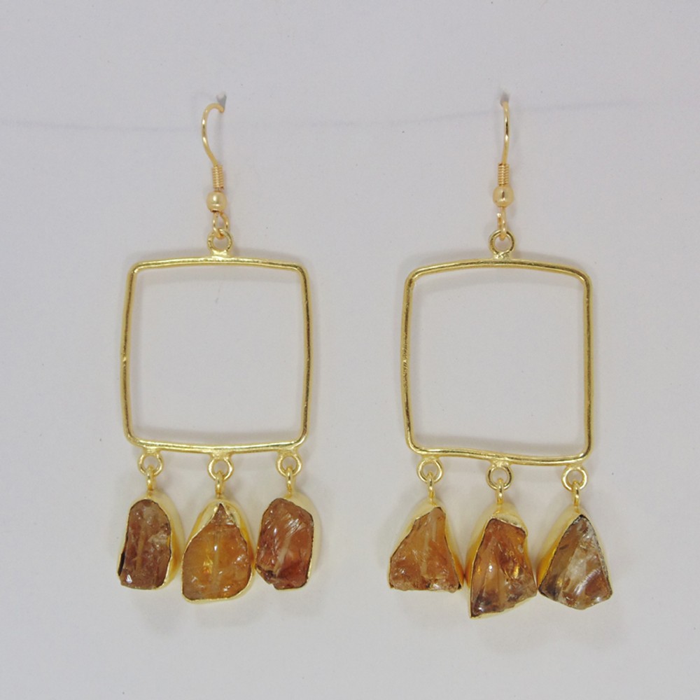 Raw Citrine Earrings - Handmade Earrings - Raw Gemstone Earrings - Chandelier Earrings - Wedding Earrings - Stone Earrings - Women Earrings