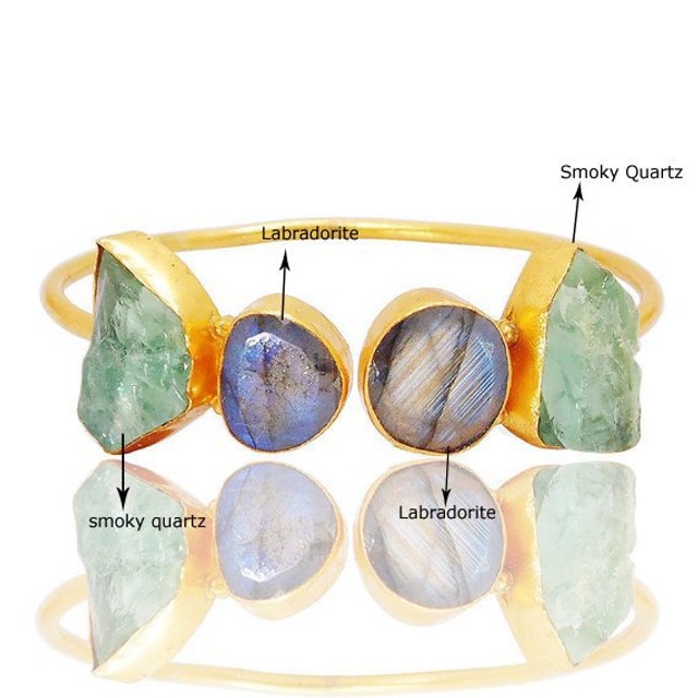 Handmade Brass Bangle - Natural Labradorite Bangle - Adjustable Bangle - Gemstone Bangle - Fluorite Bangle - Gold Palted Bangle - Faceted Stone Bangle - Gift For WomensProduct DetailsItem Code: AJRBB-996-AGross Wt. 19.500 GmsStone Name: Labradorite, FluoriteMetal: Yellow Gold Plated Over BrassBracelet Inner diameter : 2.50" Inch - Adjustable
