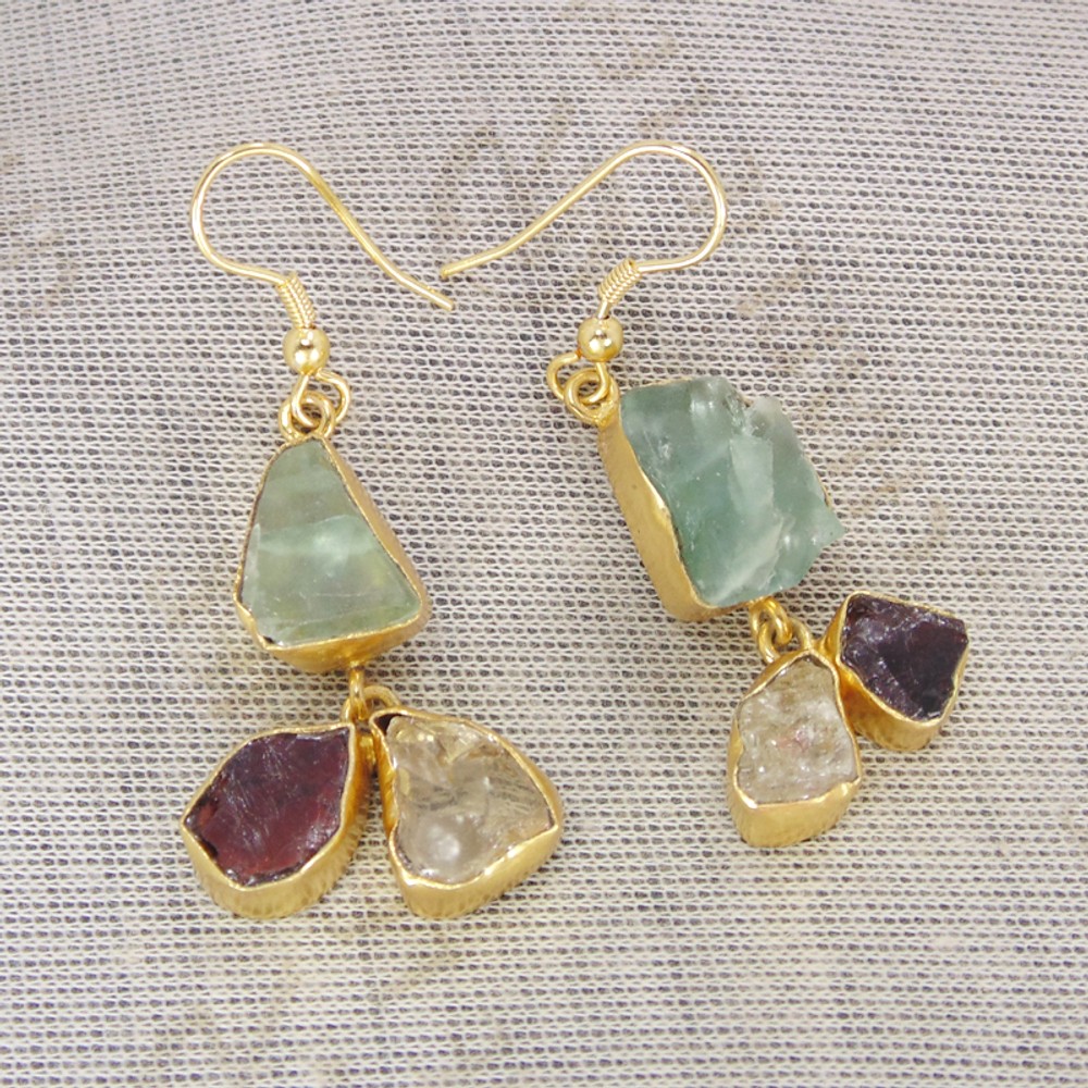 Fluorite Earrings - Raw Citrine Earrings - 18K Gold Plated Earrings - Garnet Earrings - Raw Stone Earrings - Fashion Earrings - Dangle Earrings