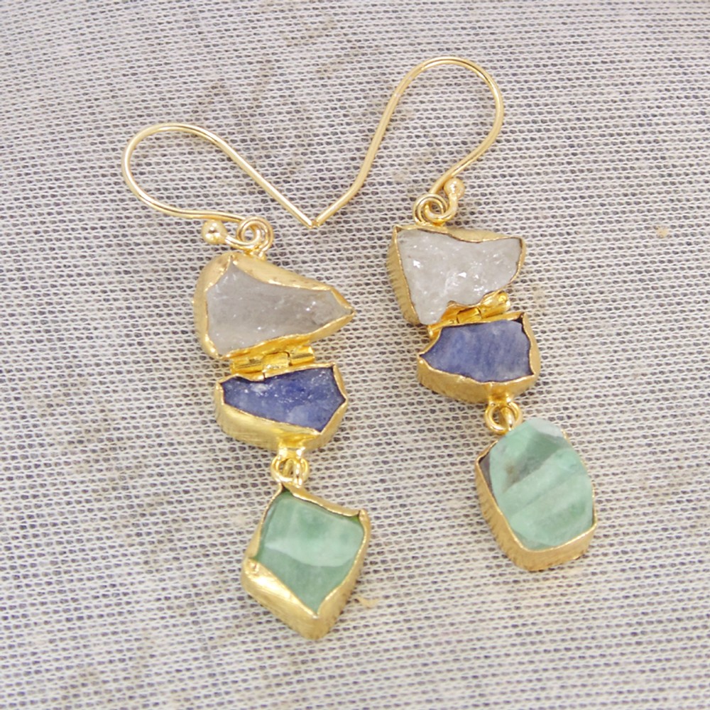 Natural Tanzanite Earrings - Handmade Earrings - Fashion Earrings - Dangle Earrings - Raw Stone Earrings - Gold Plated Earrings - Fluorite Earrings