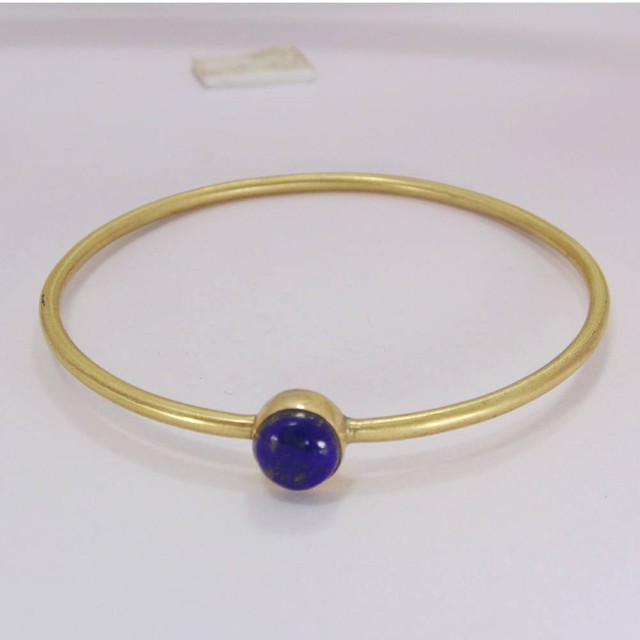 Natural Lapis Lazuli Bangle - 18K Yellow Gold Plated Bangle - Blue Stone Bangle - Thin Stacking Bangle - Birthstone Bangle - Womens Bangle - Gift For Her