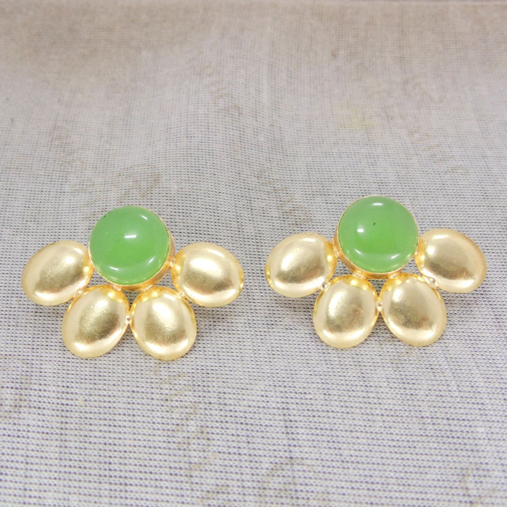 Designer Handmade Green Chalcedony Gemstone Studs Earrings
