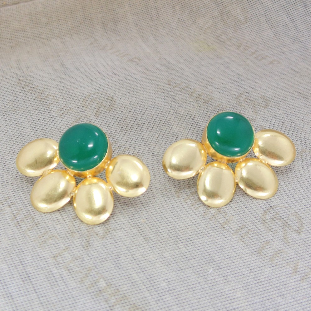 Handmade Studs Earrings - Green Onyx Studs Earrings - Round Stone Studs - Post Studs Earrings - Handmade Studs - Brass Studs Earring - Large Studs Earrings