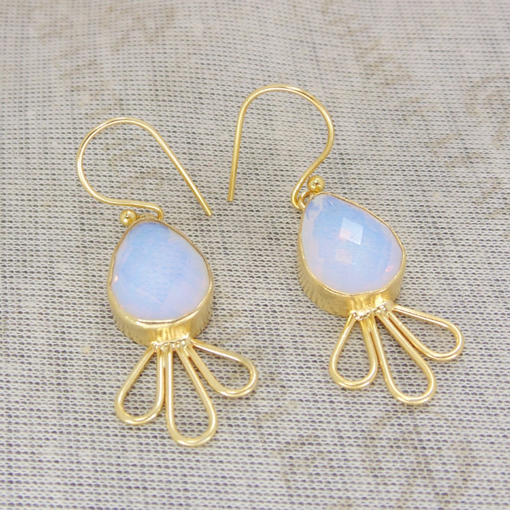 Gold Plated Earrings - Opalite Earrings - Drop Earrings - Pear Stone Earrings - Handmade Earrings - Women Earrings - Birthday Gift Ideas