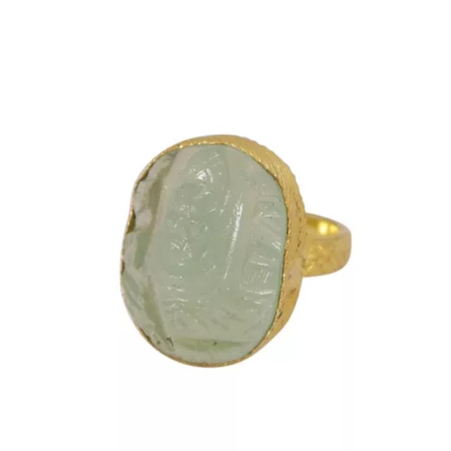 Natural Fluorite Statement Ganesha Gold Plated Bezel Gold Ring