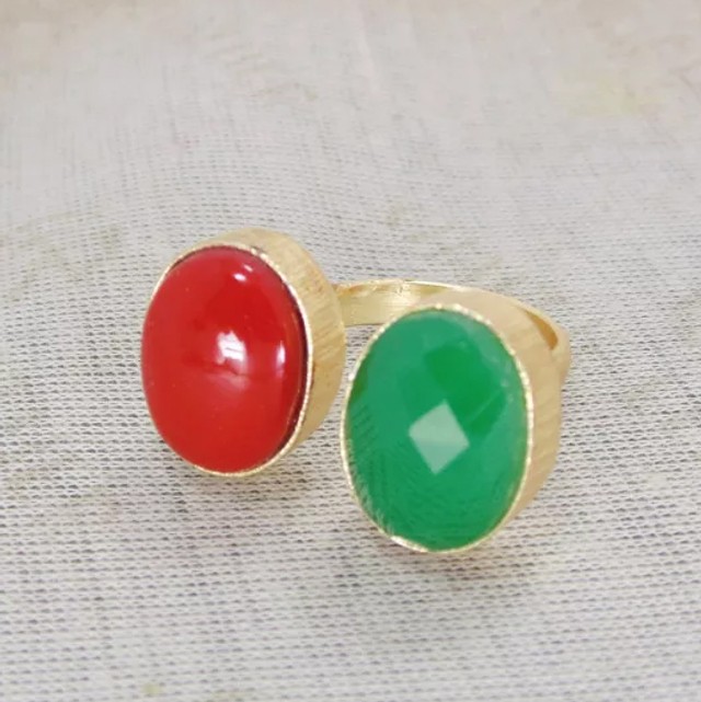 Handmade Beautiful Red Onyx And Green Onyx Gemstone Adjustable Ring