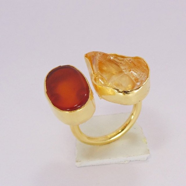 Handmade Gold Carnelian Raw Citrine Rough Stone Adjustable Gold Carnelian Ring