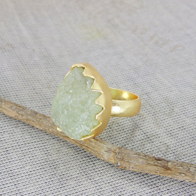 Wonderful Design Handmade Gold Rutilated Quartz Large Gemstone Ring