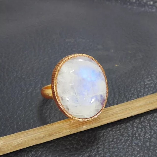 925 Stereline Silver Bezel Set Rainbow Moonstone Stacking Ring For Women