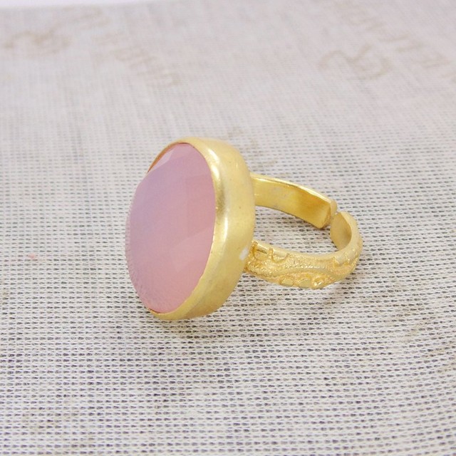 Handmade Rose Quartz Yellow Gold Plated Wedding Ring For Women
