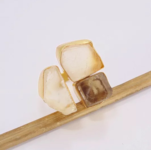 Product DetailsItem Code: AJBR-0127Gross Wt. 12.520 GmsStone Name: Crystal Quartz, Smoky QuartzMetal: Yellow Gold Plated Over BrassRing Sizes: Please choose from drop down menu. If you do not see your finger size, select custom and I'll make a ring just for you!