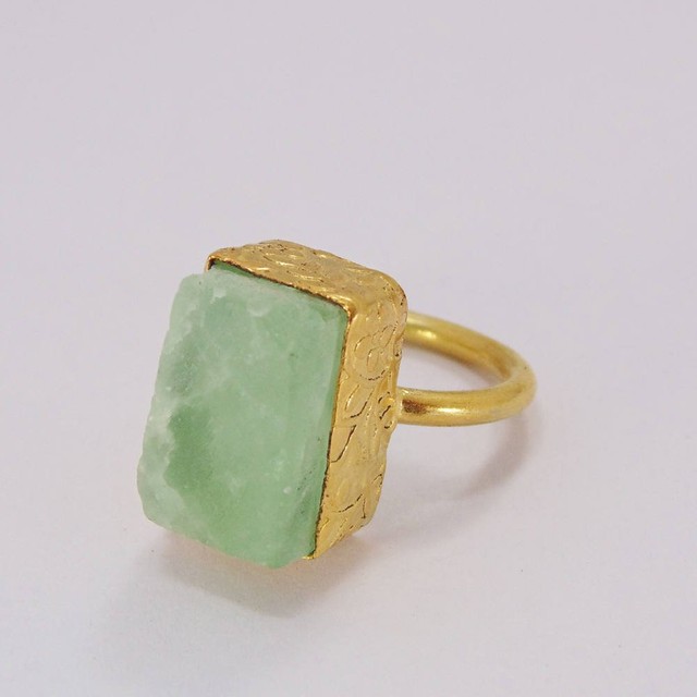 Item Code: AJR34BR-9-AGross Wt. 6.00 GmsStone Name: Green FluoriteMetal: Yellow Gold Plated Over BrassRing Sizes: Please choose from drop down menu. If you do not see your finger size, select custom and I'll make a ring just for you!