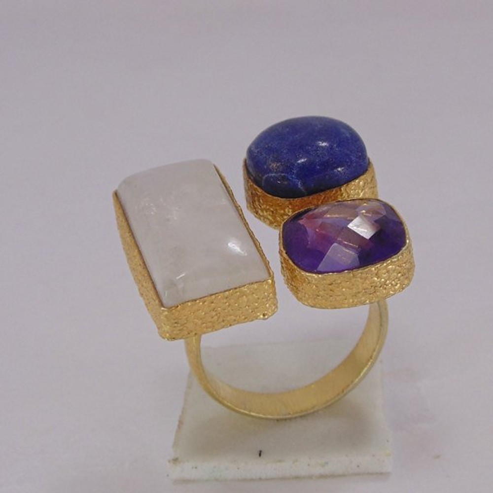 Product DetailsItem Code: AJRBR-958-AGross Wt. 7.500 GmsStone Name: Rainbow Moonstone, Lapis Lazuli, AmethystMetal: Yellow Gold Plated Over Brass