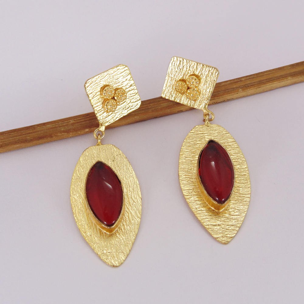 Handmade Marquise Hammered Drop Gold Plated Designer Earrings For Women