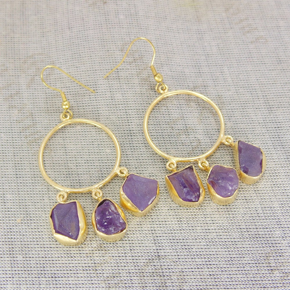 Natural Designer Amethyst and Chandelier Gemstone Designer Earrings