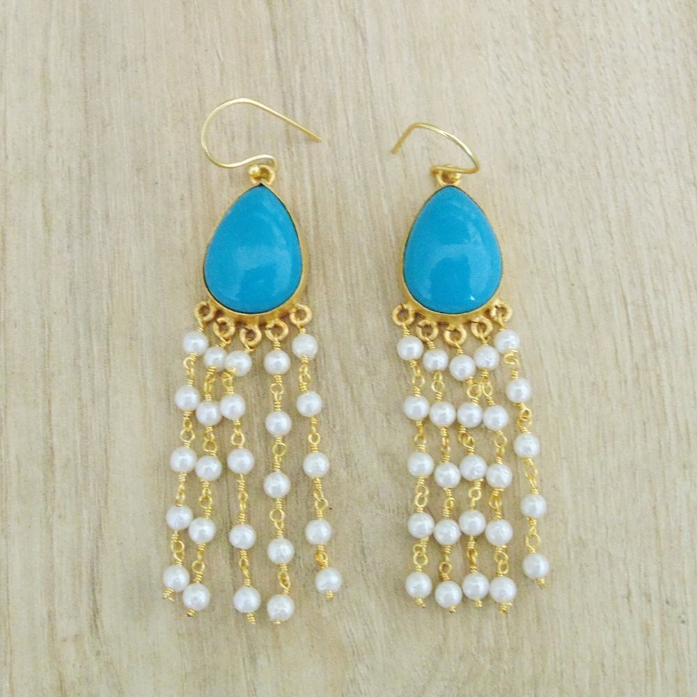 Handcrafted Blue Turquoise Chandelier Earrings For Women