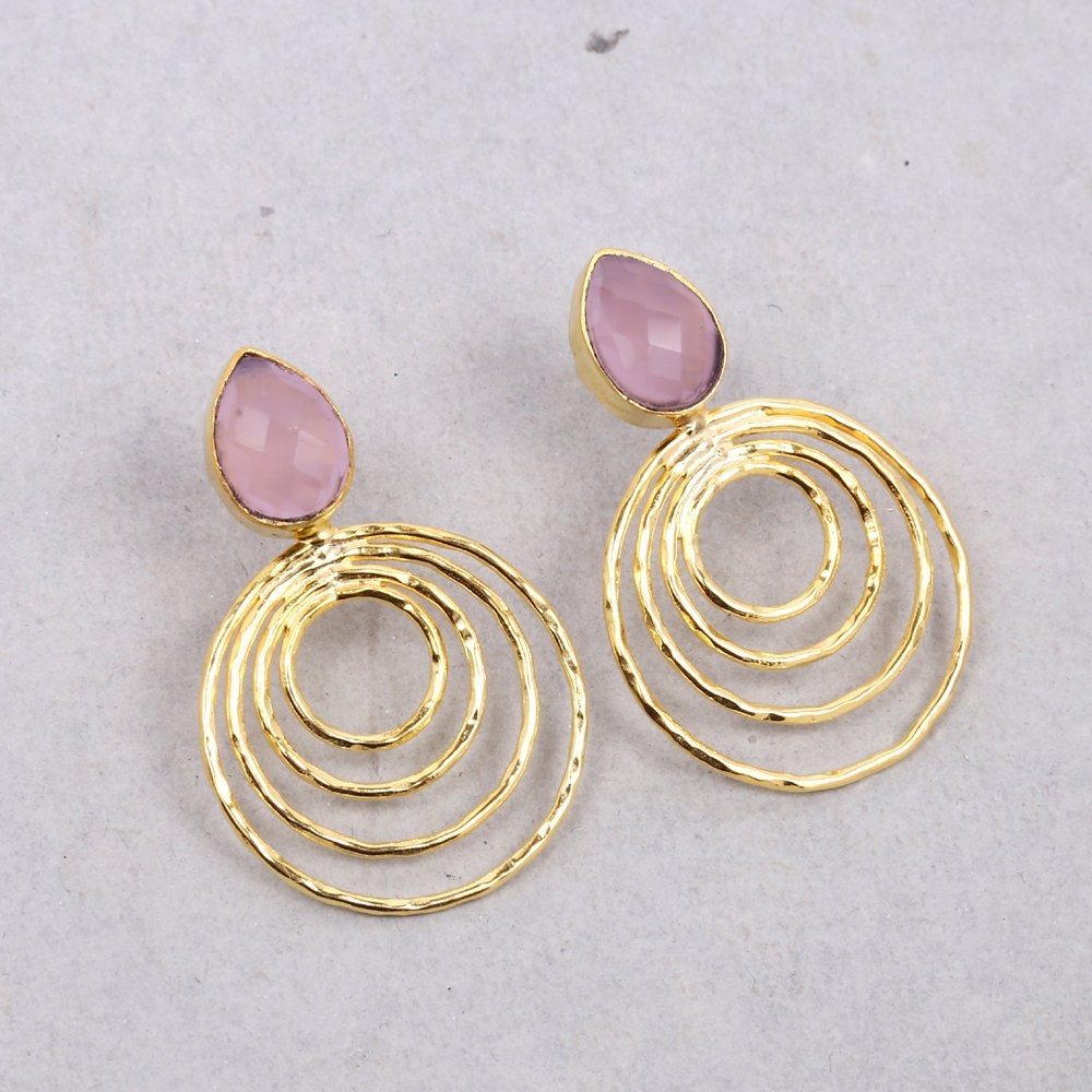 Product DetailsItem Code: BE-0062Gross Wt. 3.400 GmsStone Name: Rose QuartMetal: 18K Yellow Gold Plated Over BrassEarrings dimension: 1.50 X 1.50 Cms