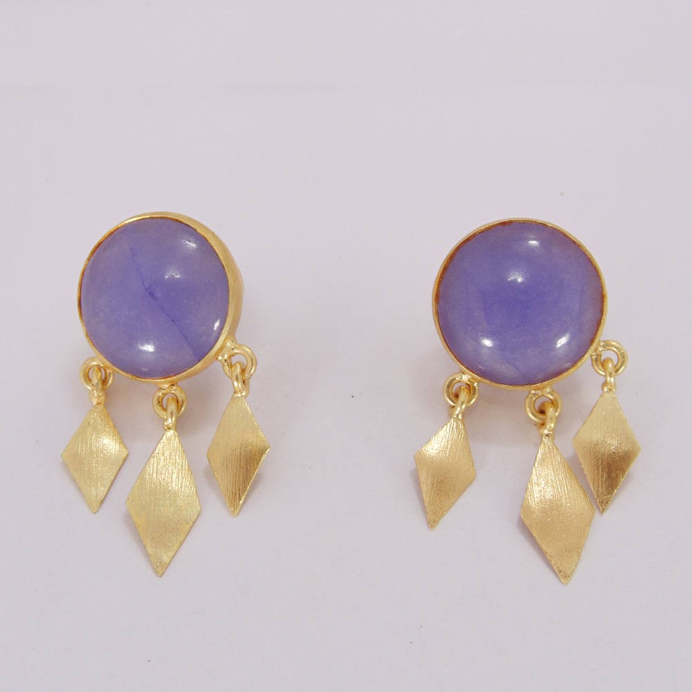 Handmade Purple Aventurine Post Dangle Designer Earrings For Women
