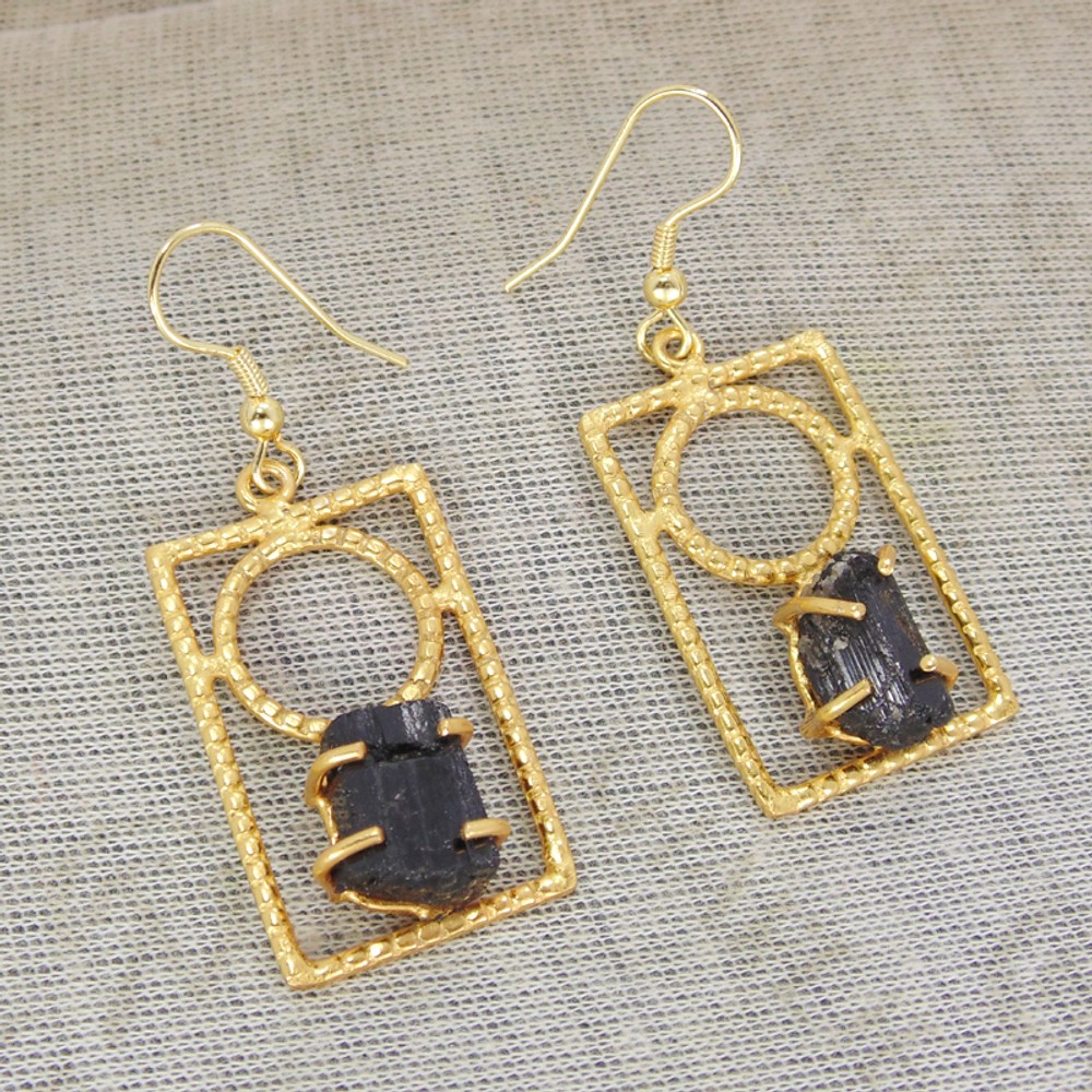 Handmade Black Tourmaline Gemstone Drop Earrings For Women