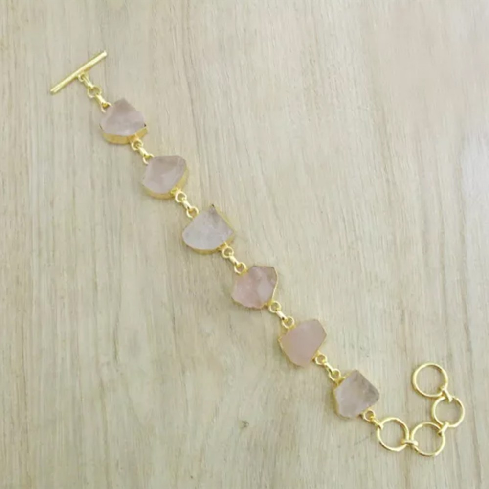Handcrafted Rose Quartz Gold Plated Adjustable Bracelet For Women