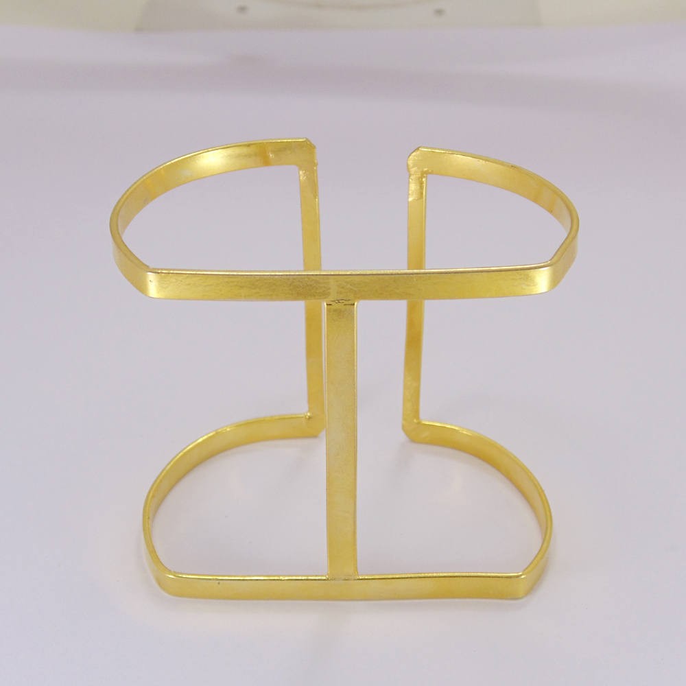 Natural Gold Vermeil Solid Brass Adjustable Plain Cuff Bracelet For Women