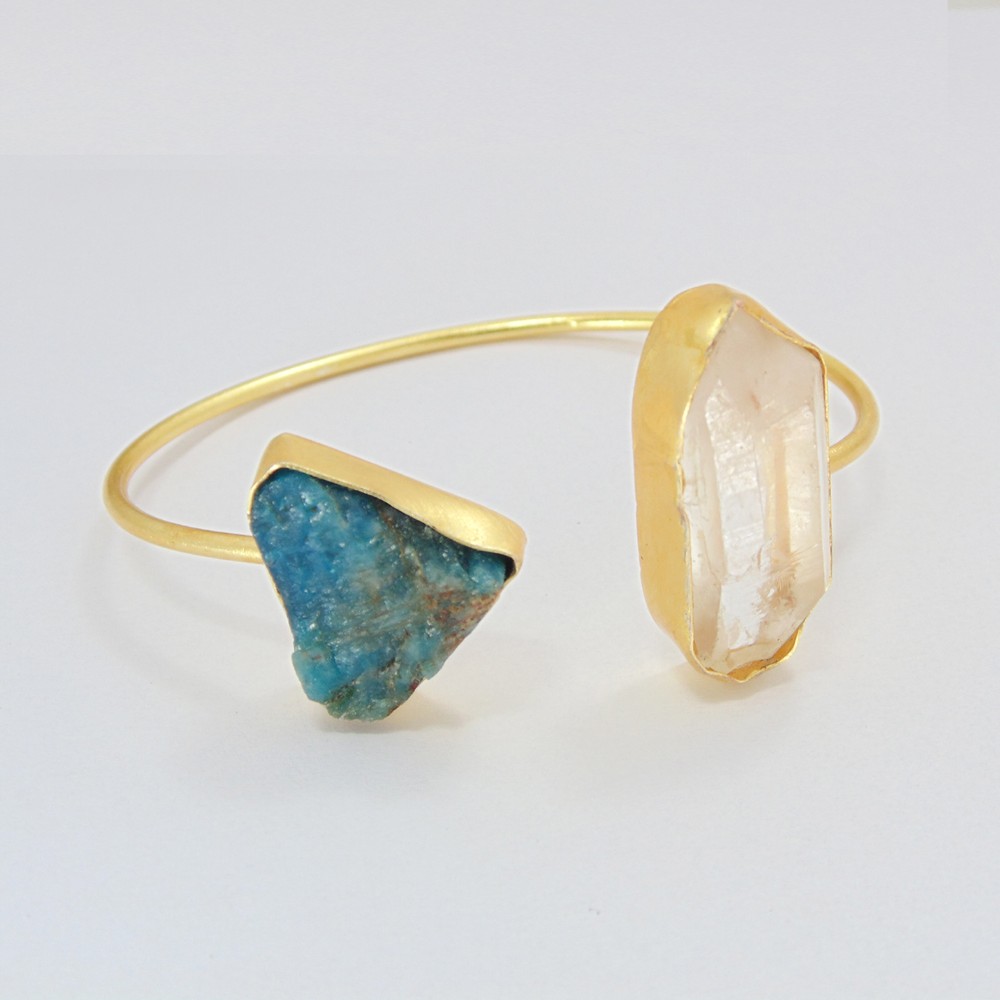 Product DetailsItem Code: AJBC-0031Gross Wt. 14.640 GmsStone Name: Apatite, CrystalMetal: 18K Yellow Gold Plated Over BrassBracelet Inner diameter : 2.00" Inch - Adjustable