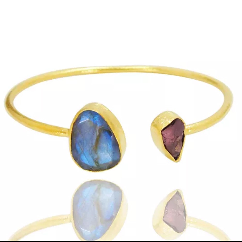 Natural Gold Vermeil Labradorite Dual Stone Bangle For Women