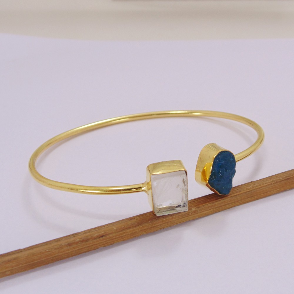 Item Code: AJBC-0069Gross Wt. 10.00 GmsStone Name: Crystal Quartz, ApatiteMetal: 18K Yellow Gold Plated Over BrassBracelet Inner diameter : 2.50" Inch - Adjustable